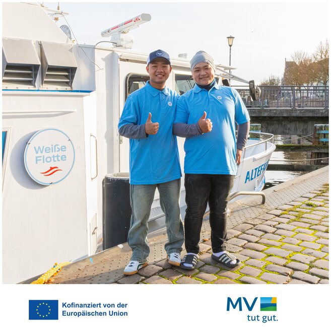 Die Weiße Flotte begrüßt ihre neuen Auszubildenden Binh und Khai in Stralsund.Die beiden sind frisch aus Vietnam nach Vorpommern-Rügen gekommen, um…